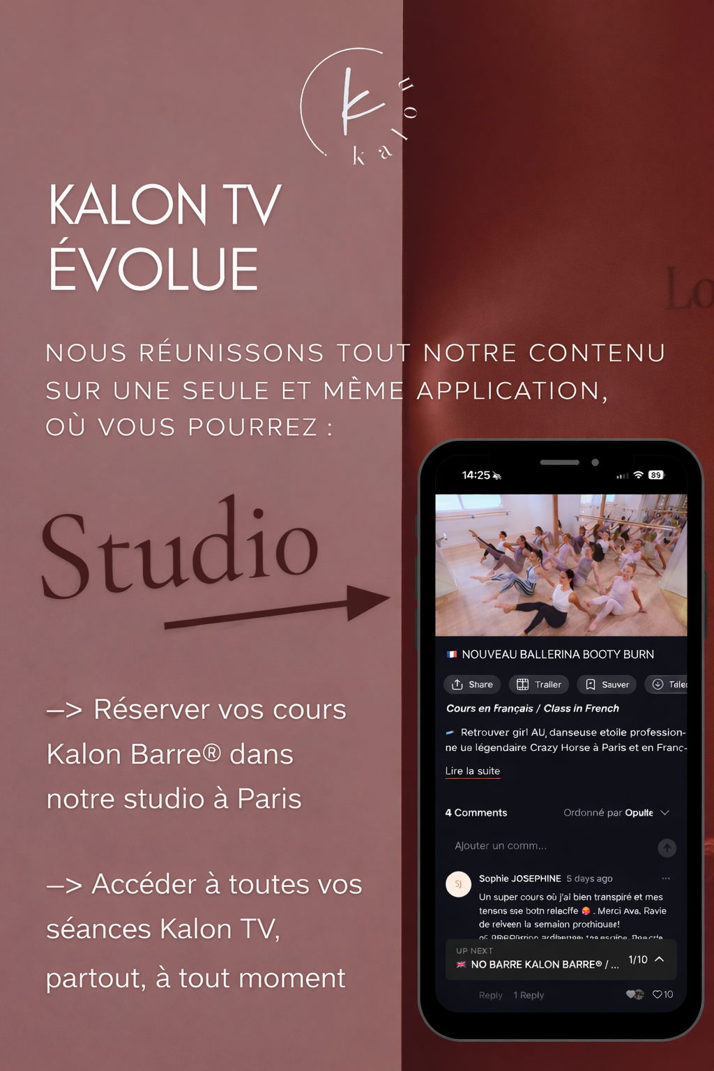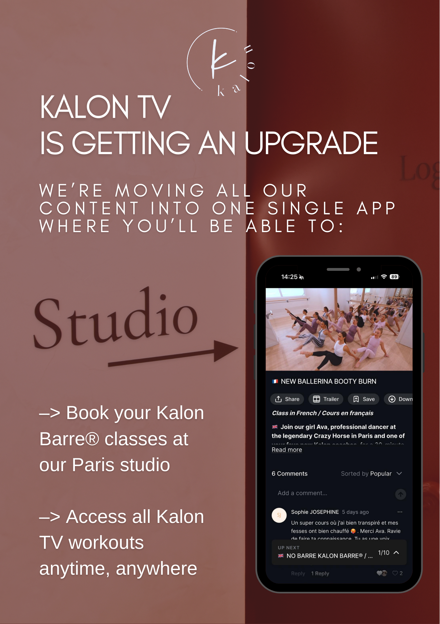 Our goal: one app to access your Kalon classes, both online and in studio.